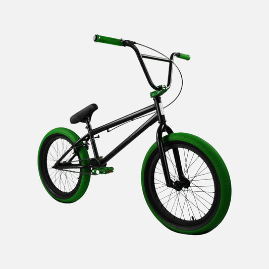Elite BMX Stealth 20" Black Green Bike, 2024 Model, Hi-Tensile Steel Frame, 170mm Chromoly Cranks, 25T Sprocket, 2.4" Tires, Alloy Brakes, Pegs Included