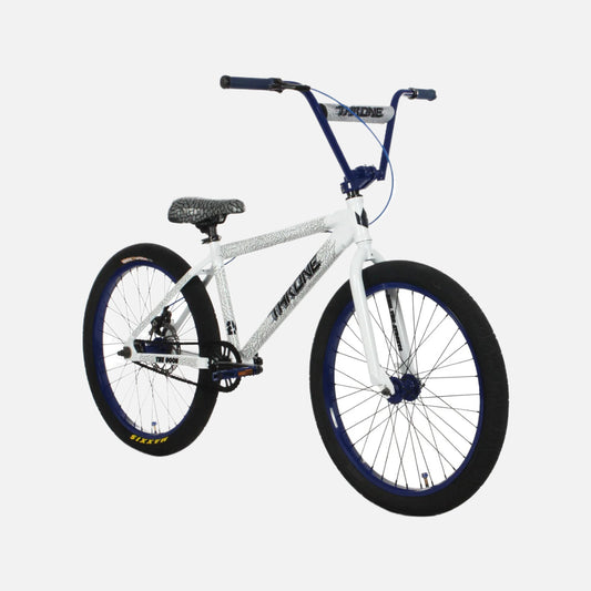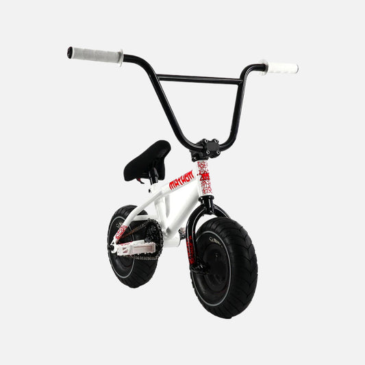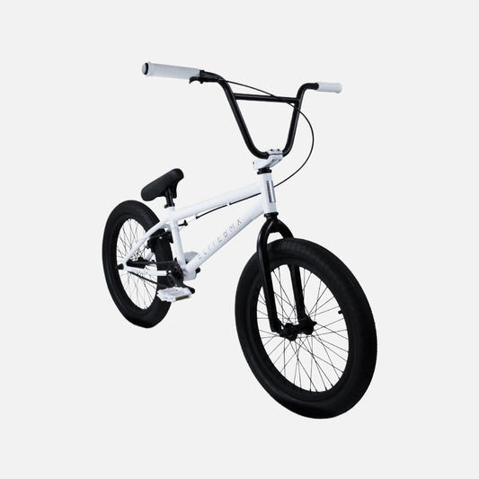 Elite BMX Destro Bike White Splatter 20” Hi-Tensile Steel Cr-Mo Fork 3-Piece Cr-Mo Cranks Tektro Brakes 20 x 2.4” Tires