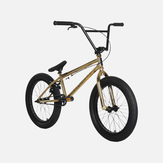 Elite BMX Destro Bike Gold 20” Hi-Tensile Steel Cr-Mo Fork 3-Piece Cr-Mo Cranks Tektro Brakes 20 x 2.4” Tires