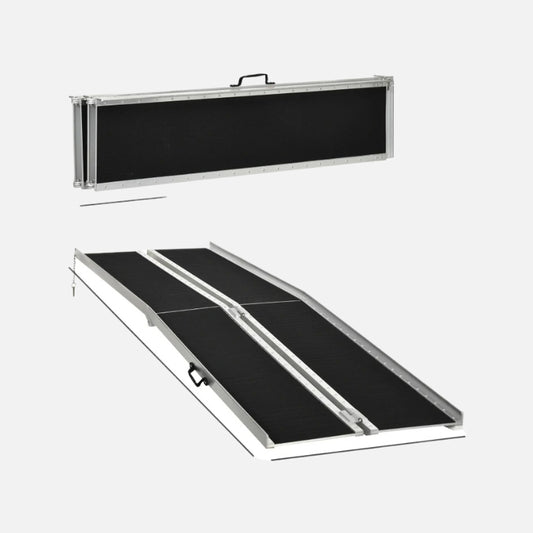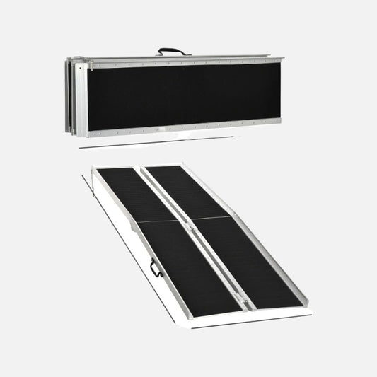 Homcom 6ft Folding Wheelchair Ramp Textured Aluminum 600lb Capacity Silver