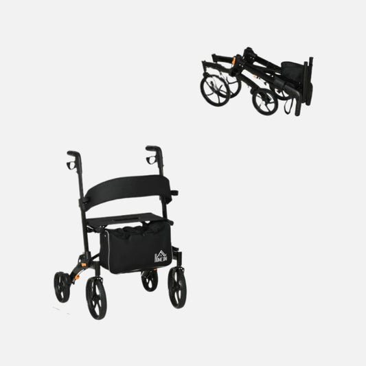 Homcom Aluminum Rollator Walker 10'' Wheels 300lb Capacity Folding Black