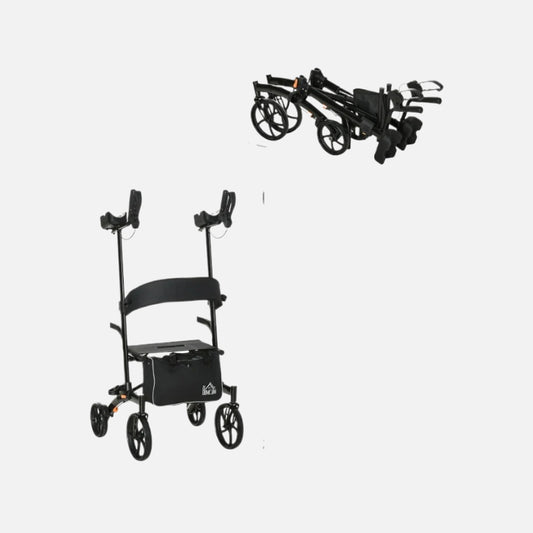 Homcom Aluminum Forearm Rollator Walker 10'' Wheels 299lb Capacity Folding Black