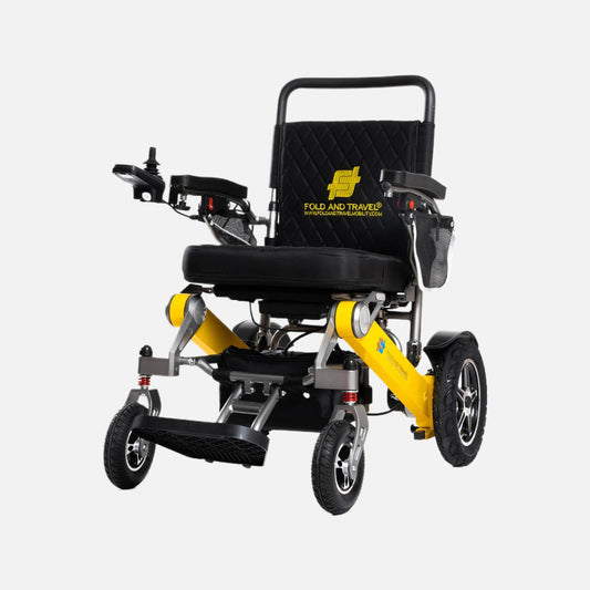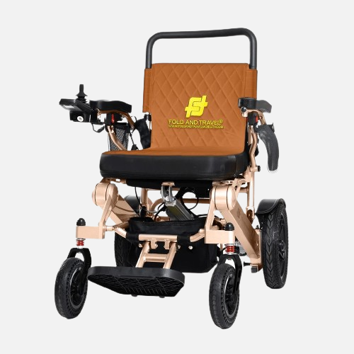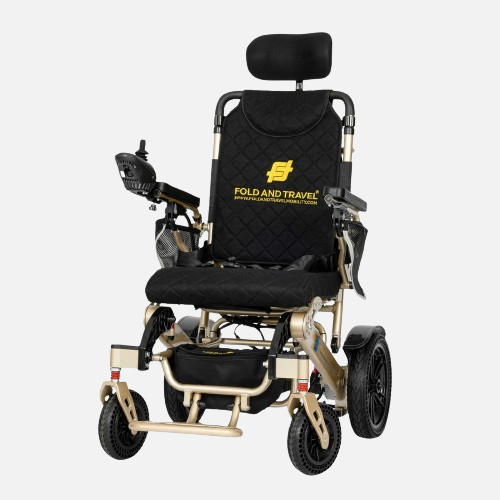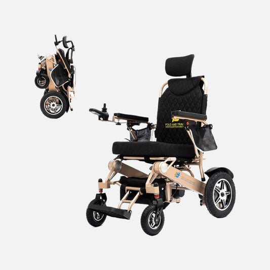 Fold and travel auto fold remote control lightweight portable electric power wheelchair top speed 5mph - gold frame